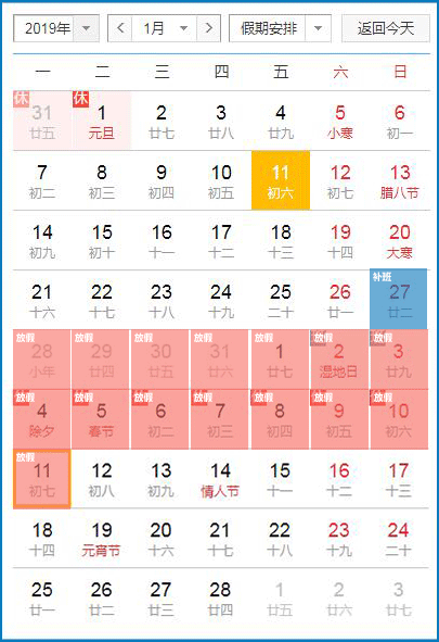 二、2019年12日(正月初八)正常上班。