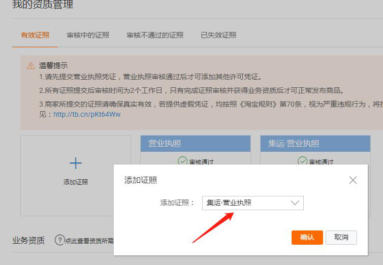 第二步:打开卖家资质提交入口:https://scportal.taobao.com/quali/portal.htm,