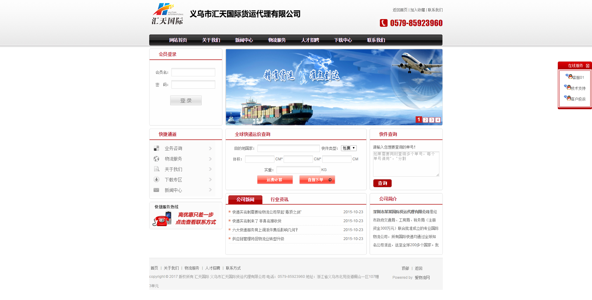 义乌汇天国际物流网站建设