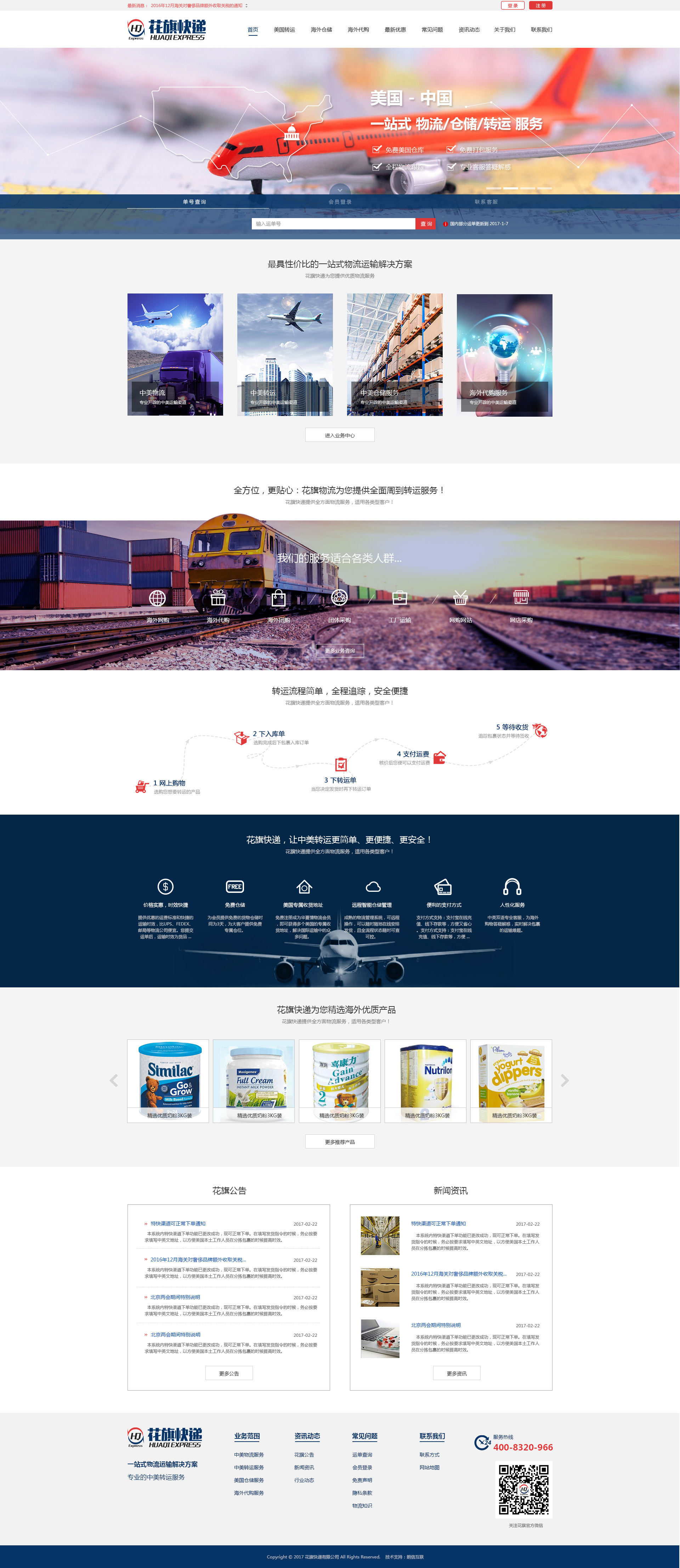 项目介绍:花旗物流网站,提供美国到中国的物流、仓储、转运服务,主要为个人海外网购、海外代购、团购网站、及淘宝、天猫国际等商家提供服务。