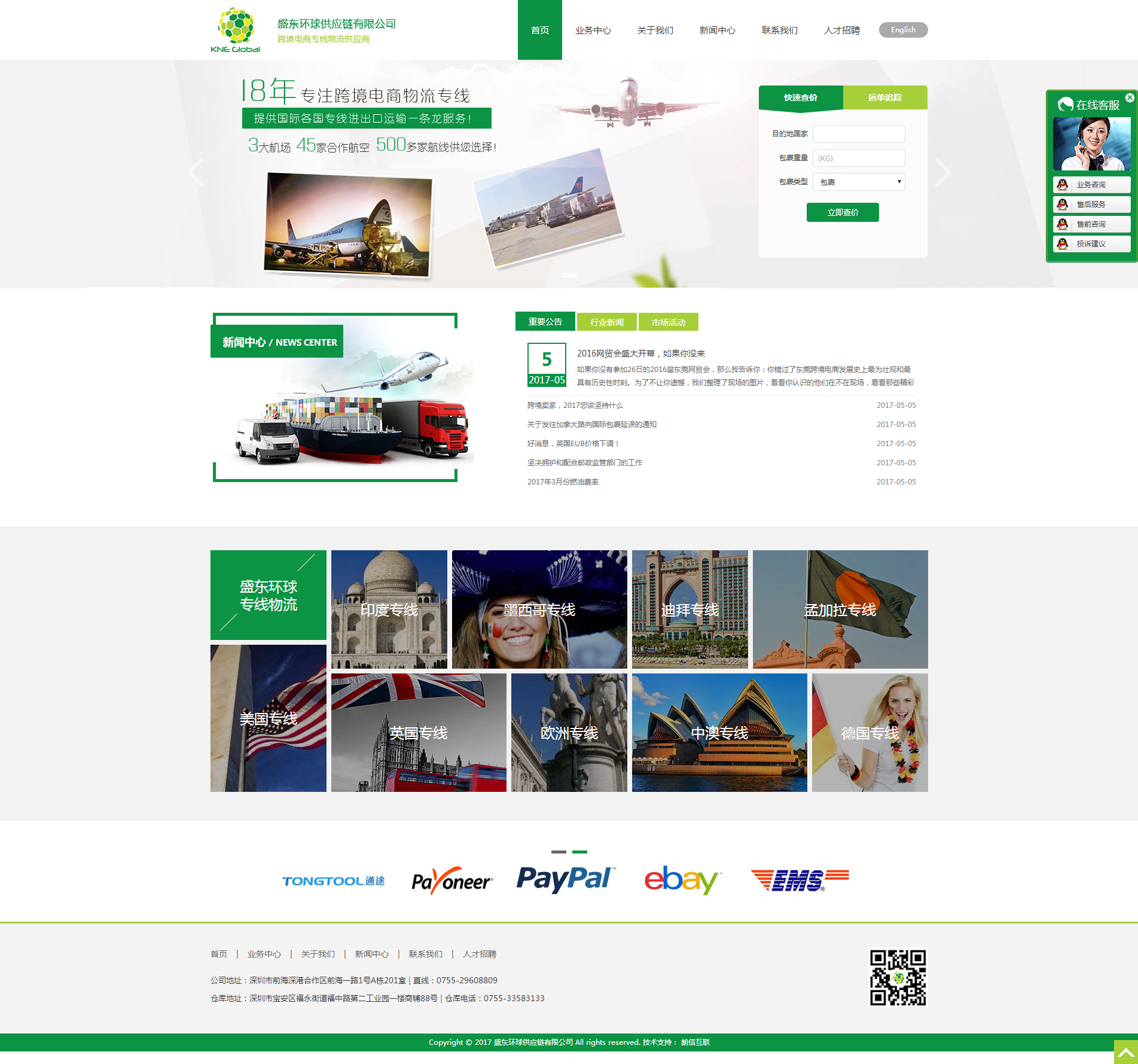 盛东环球供应链有限公司 是经中国民航局,交通部和海关总署批准成立的综合性国际物流企业。公司经营国际进出口运输业务,提供全球国际空运、国际海运、国际快递、代理报关、报检、进出口以及全方位的物流配套服务。
