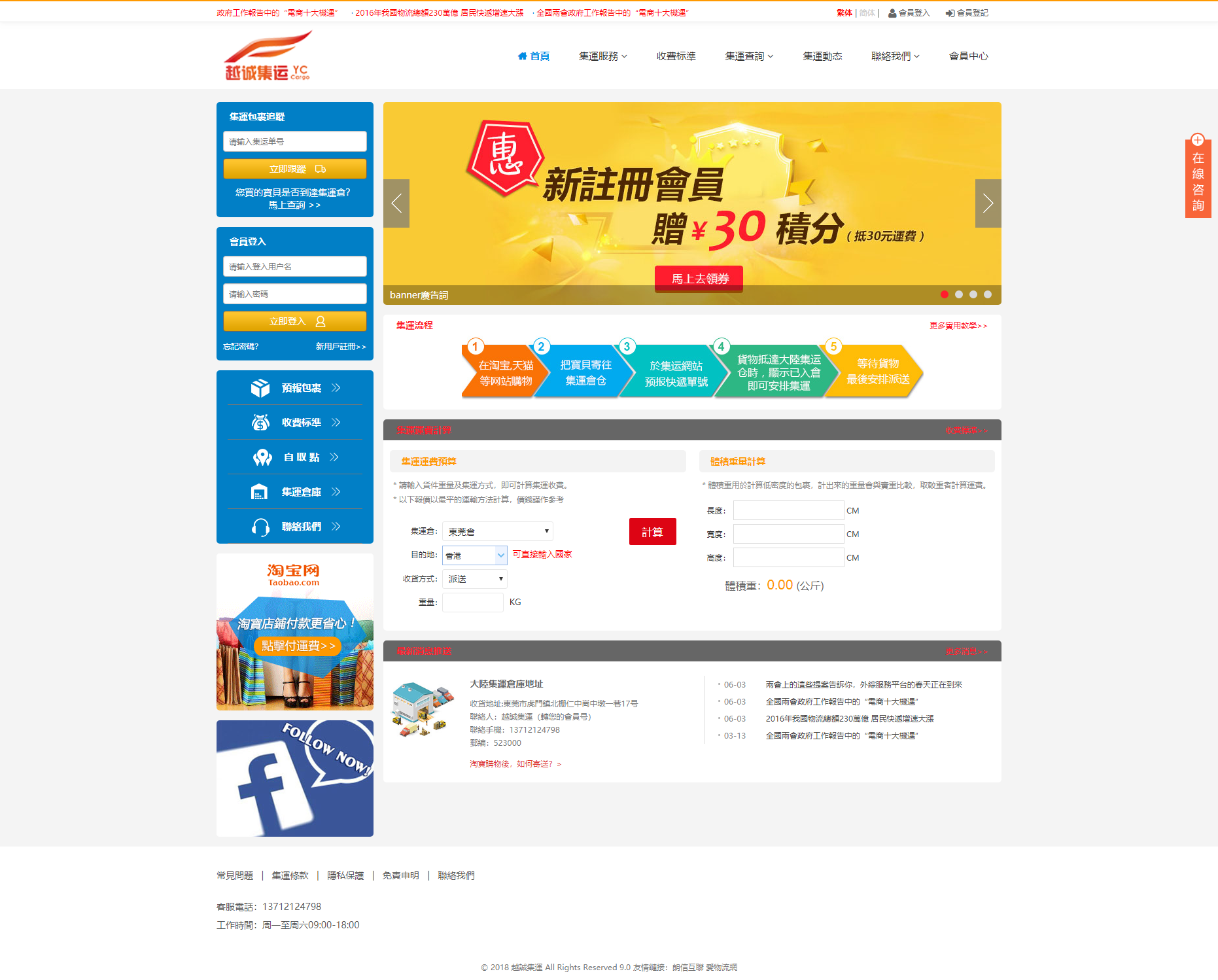 越诚集运PC版-集运网站建设