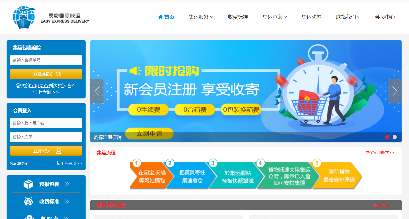 项目类型:易寄国际物流开发 项目网址:www.easycargonet.com
